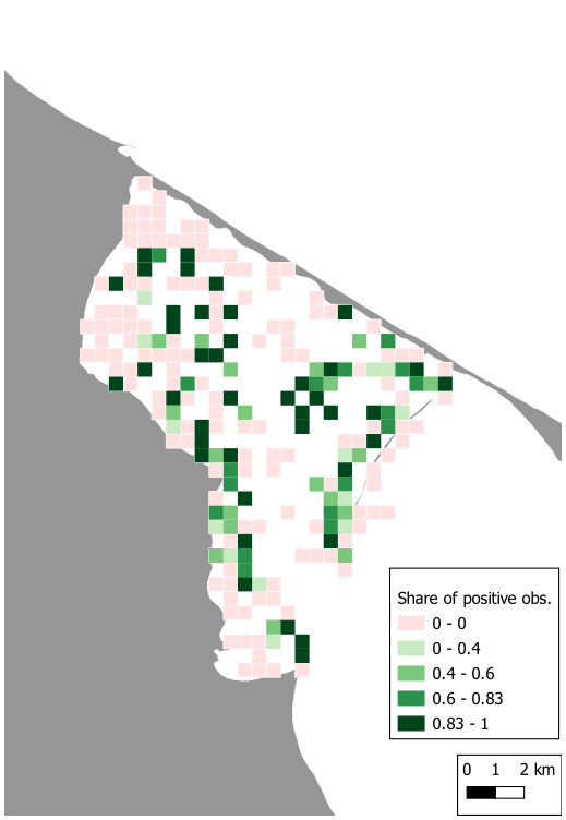 - Należy sprawdzić model rozmieszczenia trawy morskiej - szczególnie w miejscach, które zostały przedstawione jako najbardziej odpowiednie dla obecności trawy morskiej oraz oznaczone jako nie nadające się dla trawy.
